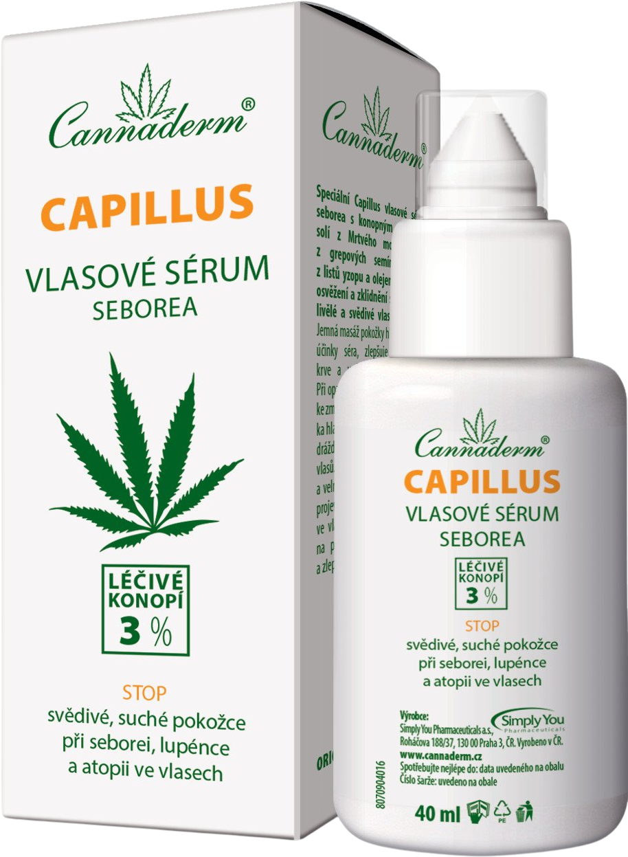 Kosmetický přípravek, vlasové sérum s konopným extraktem, solí z Mrtvého moře, výtažky z grapefruitových semínek, yzopu a máty pro osvěžení a zklidnění suché, přecitlivělé a svědivé pokožky hlavy. Více informací
