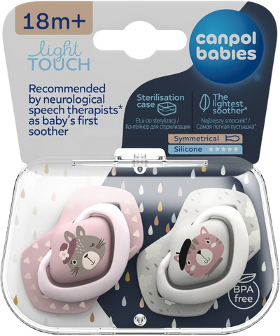 Dudlíky Light touch z kolekce Bonjour Paris mají výjimečně lehký a malý štítek, proto jsou vhodné i pro novorozeňátka. Gumička je vyrobena z měkoučkého silikonu a vyžaduje menší úsilí při sání, takže rychle miminko uklidní. Dudlíky jsou baleny v praktické sterilizační kapsli, která zajistí rychlou a snadnou sterilizaci.