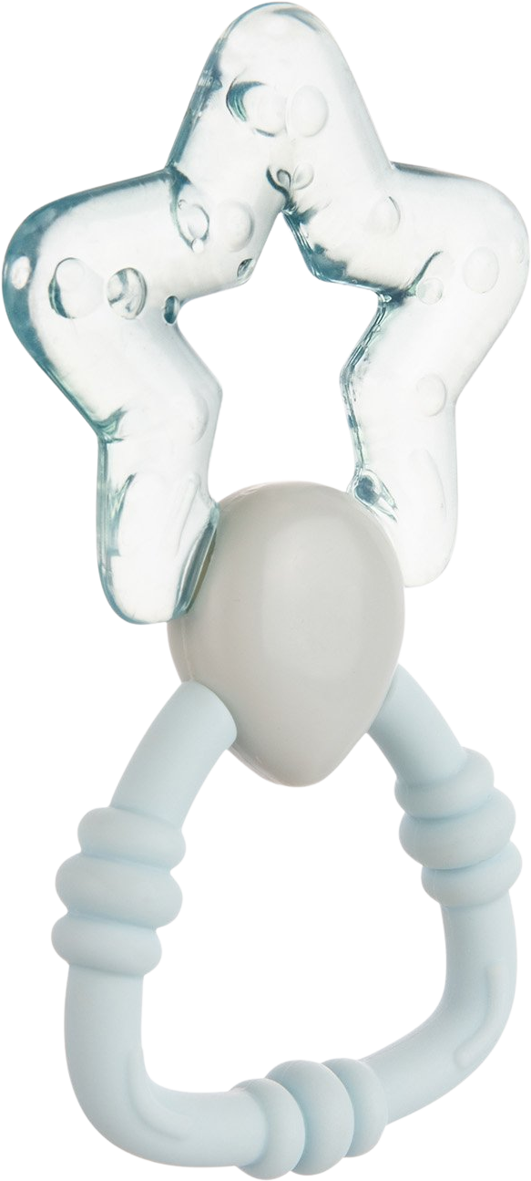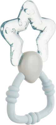Krásné a kvalitní chladící kousátko s chrastítkem pro miminko. Díky své lehké váze se dobře drží miminku již od narození. Můžete nechat kousátko nachladit v ledničce a miminku pak při prořezávání zoubků, pomůže zmírnit od bolesti dásní. Chrastítko se miminku dobře drží v ručičkách, obsahuje na povrchu různé textury a tím pomáhá rozvíjet jeho motorické schopnosti.