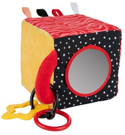 Měkká kontrastní kostka z kolekce BabiesBoo má mnoho senzorických prvků, které povzbuzují ke hře a podporují rozvoj smyslů od prvních okamžiků života: zrak, sluch a hmat. Šustící prvky, kousátko, zrcátko nebo jemně zvonící chrastítko jsou pro dítě zajímavé při prvním objevování světa. Měkká senzorická kostka v kontrastních barvách, které novorozenci vidí jako první, podporuje správný vývoj zraku dítěte. Univerzální kroužek umožňuje připevnit hračku na postýlku, kočárek, houpací křeslo nebo autosedačku. Senzorická kostka tak poskytne vašemu děťátku zábavu doma, na procházce nebo na cestách.