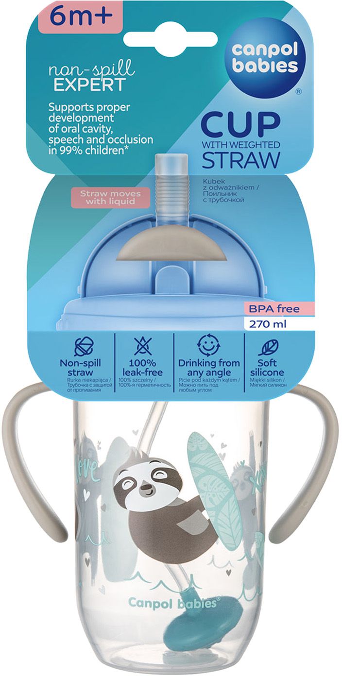 Nový nevylévací hrneček canpol babies se silikonovou slámkou podporuje správný vývoj dutiny ústní, řeči a skusu u 99 % dětí. Je to perfektní volba pro děti, které začínají své dobrodružství při učení samostatného pití. Unikátní silikonová slámka se pohybuje s tekutinou, díky tomu může dítě pít do poslední kapky bez ohledu na úhel. Vhodný pro děti od 6 měsíců.