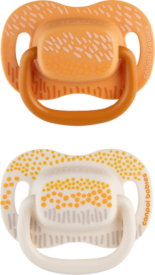 Canpol babies Set symetrických silikonových dudlíků Mountains 0-6m, žlutý 2 ksVše o produktuDoplňující informaceHodnocení produktuVlastnosti: