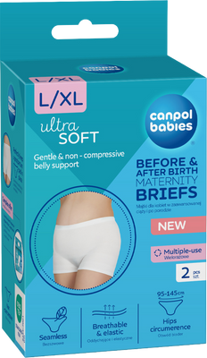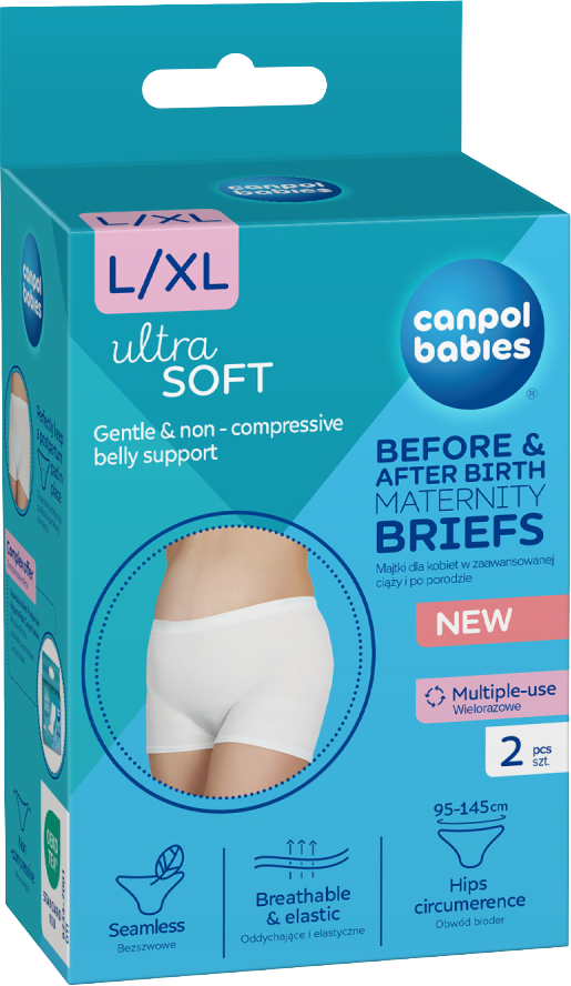 Velmi pohodlná a bezešvá alternativa ke klasickým těhotenským kalhotkám. Byly navrženy speciálně pro maminky a budoucí maminky, které hledají pohodlné těhotenské a poporodní spodní prádlo. Canpol babies 2v1 jsou opakovaně použitelné a lze je prát v ruce nebo i v pračce při teplotě do 60°C. Více informací