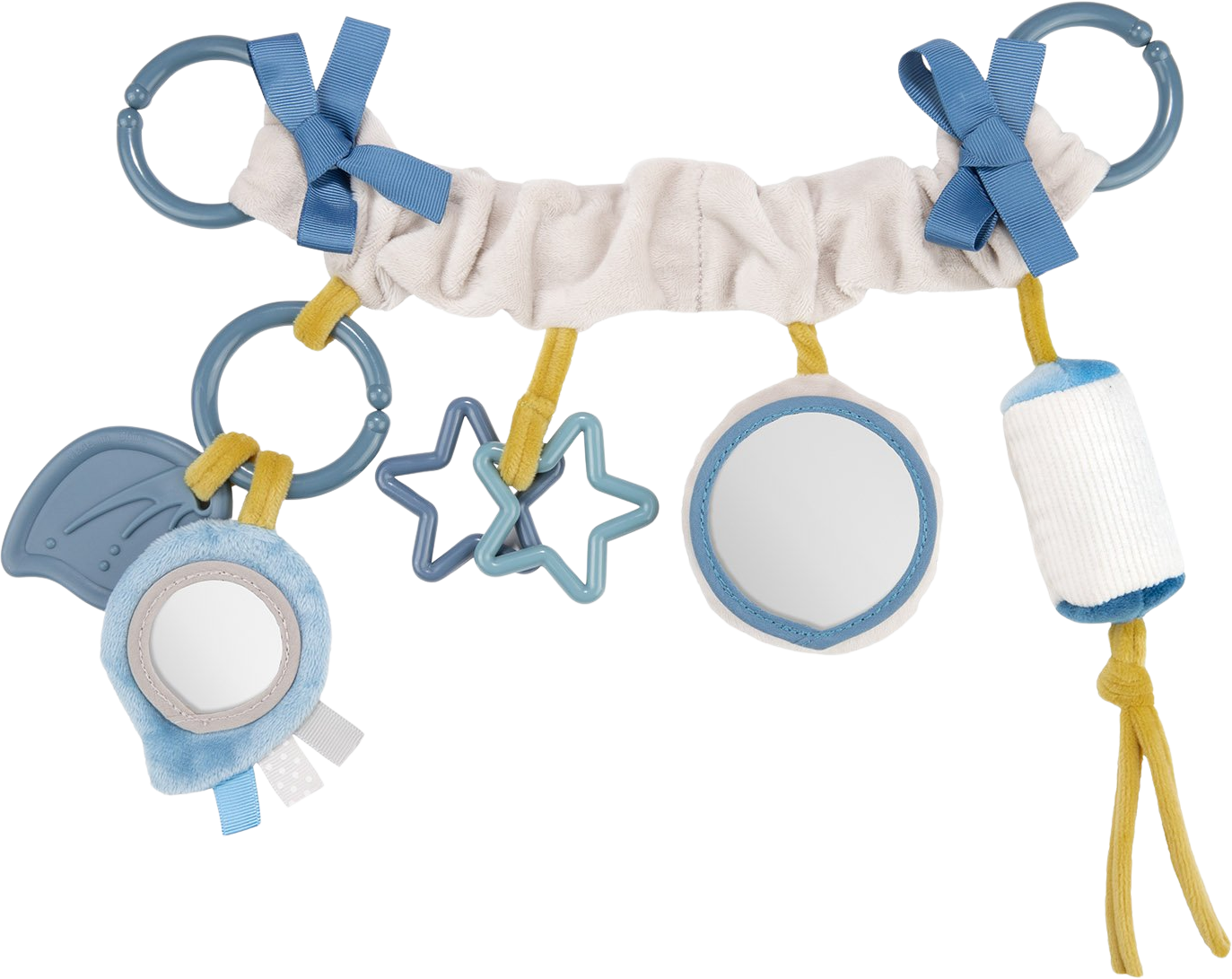 Pozor! Důležité pro bezpečnost a zdraví vašeho dítěte! Před montáží odstraňte všechny obalové prvky. Ujistěte se, že všechny malé hračky jsou správně a bezpečně připevněny k produktu. Hračku připevněte k okraji boudy kočárku mimo dosah dítěte a ujistěte se, že je pevně připevněna. Před použitím musí být montáž i připevnění hračky zkontrolováno dospělou osobou. Plastový obal (balení) uchovávejte mimo dosah dítěte, předejdete tak riziku udušení dítěte obalem. Před každým použitím zkontrolujte kvalitu výrobku. Při prvních známkách opotřebení nebo poškození již výrobek dále nepoužívejte – vyměňte ho za nový. Hračku používejte pouze pod přímým dohledem dospělé osoby.