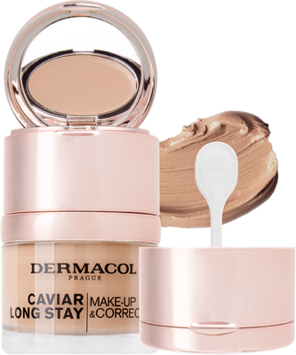 Dermacol Caviar long stay make up and corrector - tan 30 mlVše o produktuDoplňující informaceHodnocení produktuDlouhotrvající make-up s výtažky z kaviáru a zdokonalující korektor je vysoce účinný přípravek na profesionální úrovni. Zdokonalující korektor projasní partie kolem očí a zároveň zakryje barevné nedostatky pleti. Zpevňující make-up s kaviárem, který povzbuzuje a vyhlazuje pleť, má lehkou, sametovou konzistenci a dlouhodobou krycí schopnost.