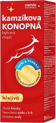 Cemio Kamzíkova konopná mast hřejivá je vhodná k aplikaci na pokožku a masírování v oblasti zad, krku, unavených či namožených svalů, ztuhlých kloubů.Více informací
