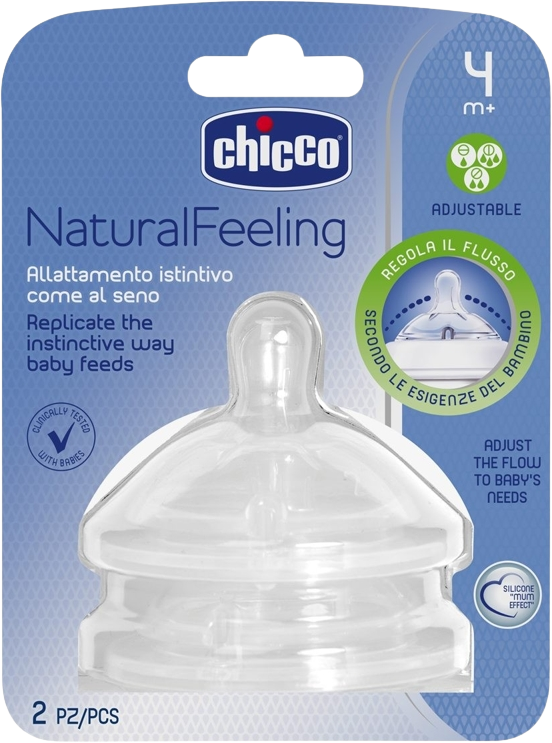 Chicco Dudlík na láhev Natural Feeling silikon, nastavitelný průtok 4m+ 2 ksVše o produktuDoplňující informaceHodnocení produktuVlastnosti: