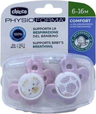 Dudlík Chicco Physio Comfort řady Physioforma patří mezi aktivní ortodontické uklidňující dudlíky. Kotouč dudlíku Physio Comfort byl speciálně navržen tak, aby byl co nejmenší možnou styčnou plochou s dětskou tvářičkou a poskytl i té nejcitlivější pokožce se sklonem k podráždění maximální komfort. Dotýká se okolí úst pouze ve čtyřech malých bodech!