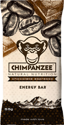 Chimpanzee Energy Bar Chocolate Espresso v nové receptuře bez palmového tuku a ochucovací pasty! Užijte si skutečnou chuť kávy a čokolády bez zbytečných triků. Čistě přírodní energie pro každý den!
