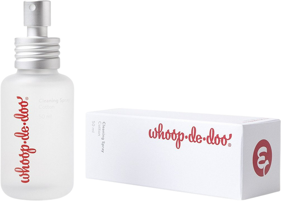 Čisticí sprej české značky Whoop·de·doo. Péče pro vaše intimní pomůcky. Ve skleněné lahvičce 50ml, s jemnou cotton vůní. Více informací