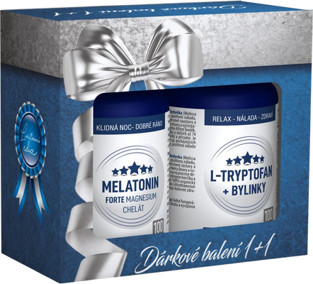 Melatonin Forte Magnesium chelátl 100 tablet + L-Tryptofan + bylinky 100 tobolek v dárkovém balení. Více informací