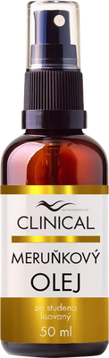 Clinical Nutricosmetics Meruňkový olej za studena lisovaný 50 mlVše o produktuDoplňující informaceHodnocení produktuMeruňkový olej má vysoce regenerační účinky. Obsahuje velké množství nenasycených esenciálních kyselin a pokožce dodává vysoký podíl vitamínů A a E.