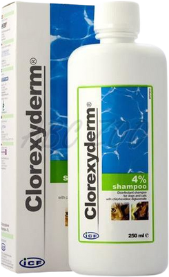 Šampon Clorexyderm je určen k čištění kůže a srsti psů a koček v případech, kdy je třeba kombinovat čisticí účinek se silným dezinfekčním účinkem.