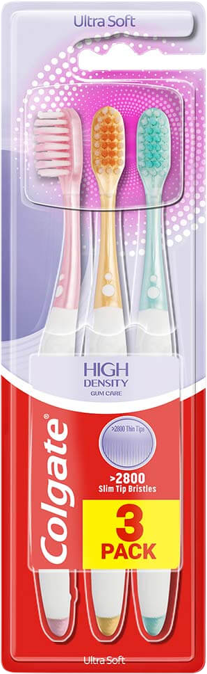 Colgate Zubní kartáčky High Desnity 3pack Ultra Soft 3 ksVše o produktuDoplňující informaceHodnocení produktuSe zubním kartáčkem Colgate High Density Gum Care se jemně postaráte o vaše dásně a budete mít více důvodů se usmívat. Tento ultra měkký zubní kartáček má vysokou hustotu vláken (víc než 2800 vláken).