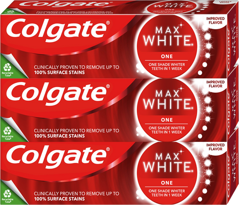 Zubní pasta Colgate Max White One šetrně odstraňuje skvrny ze zubní skloviny a přirozeně je bělí. Již po jednom týdnu pravidelného používání pasty získáte o odstín bělejší zuby. Více informací