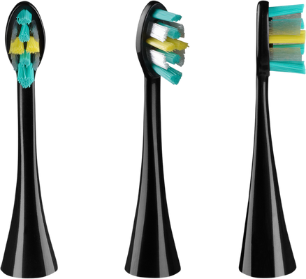 Součástí balení jsou 4 náhradní hlavice – 2× 3D Daily Clean a 2× Sensitive Clean. Hlavice 3D Daily Clean jsou ideální pro důkladné každodenní čištění. Díky svému trojrozměrnému tvaru vláken lépe kopírují kontury zubů, snadněji se dostanou i do hůře přístupných míst a účinně odstraňují plak. Sensitive Clean mají jemnější štětiny a jsou šetrnější k citlivým zubům a dásním. Hlavice jednoduše nacvaknete díky systému Click-in. Kartáček myslí i na výměnu hlavice – po zhruba 3 měsících používání vás na ni při zapnutí oranžovým blikáním sám upozorní.