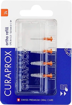 Curaprox CPS 14 ortho refill mezizubní kartáčky s pevnými vlákny a click systémem zajistí efektivní čištění mezizubních prostorů i míst s výplněmi, korunkami a můstky. Více informací
