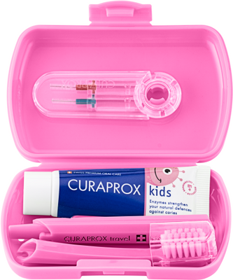 Curaprox Kids Travel Set (6–12 let) Malý praktický pomocník - už i pro děti. Malá a praktická cestovní sada pro péči o dětské zuby a dásně doma i na cestách – zábavná, plná šetrných a účinných pomůcek. Více informací