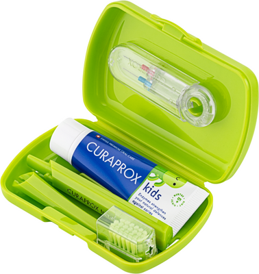 Curaprox Kids Travel Set (6–12 let) Malý praktický pomocník - už i pro děti. Malá a praktická cestovní sada pro péči o dětské zuby a dásně doma i na cestách – zábavná, plná šetrných a účinných pomůcek. Více informací
