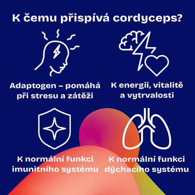 Cordyceps militaris je funkční houba tradičně spojovaná s tělesnou výkonností, vitalitou a celkovou odolností organismu. Doplněk obsahuje extrakt výhradně z mycelia, nikoliv z plodnice. Díky tomu lze kontrolovat konzistenci a čistotu suroviny. Duální extrakce (vodní a alkoholová) v poměru 4:1 zajišťuje, že výsledný extrakt obsahuje široké spektrum bioaktivních látek, včetně polysacharidů, adenosinu a cordycepinu.