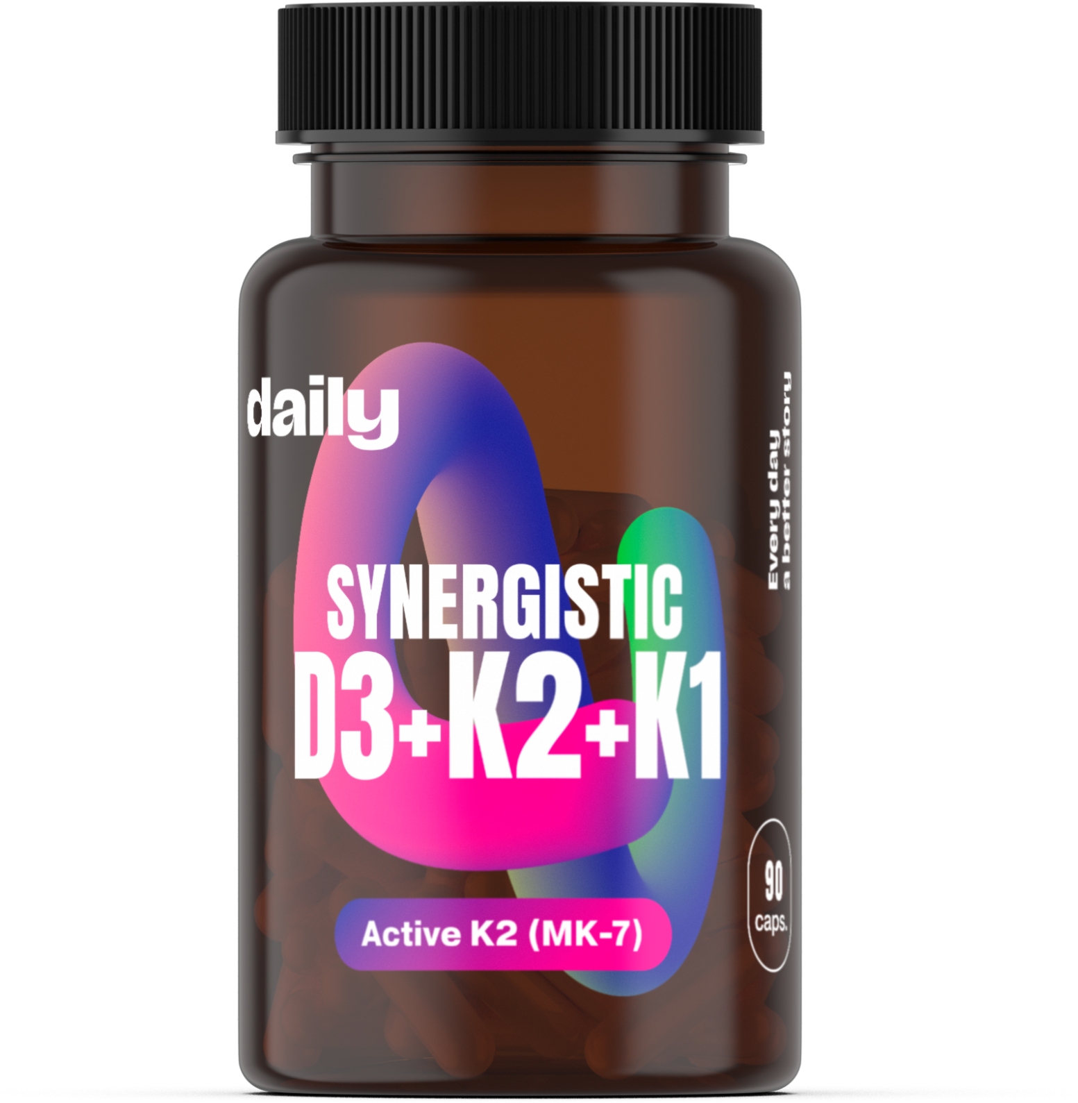 Synergistic D3 + K2 + K1 by Daily kombinuje tři formy vitamínů, které se v těle navzájem podporují: