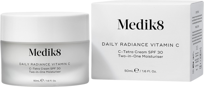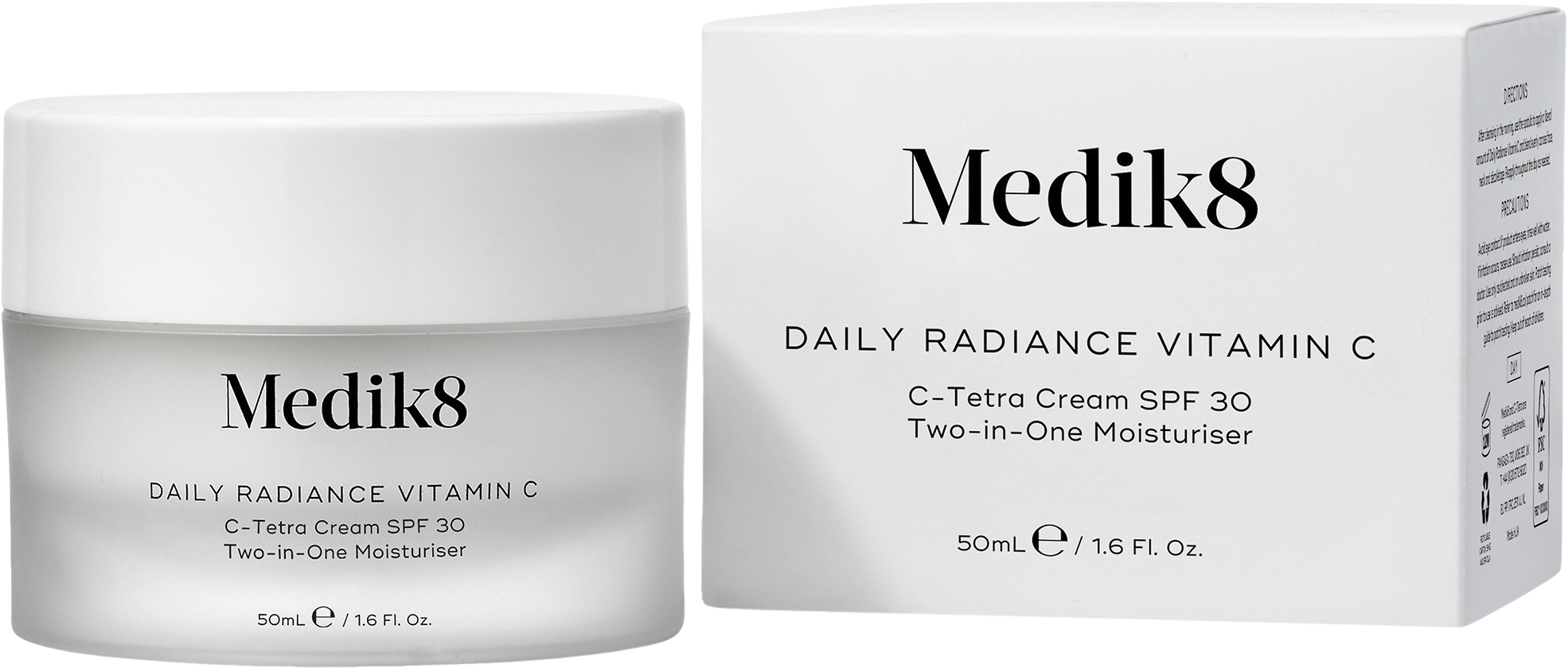 Donedávna, pokud jste pleti chtěli poskytnout vitamín C a chránit ji před slunečními paprsky, museli jste aplikovat dva produkty – sérum s vitamínem C a na něj ochranný krém. Nyní však můžete díky vitamínovému krému Daily Radiance Vitamin C tyto dva kroky spojit. Jako jediný z hydratačních krémů s SPF od Medik8 obsahuje navíc kyselinu hyaluronovou.