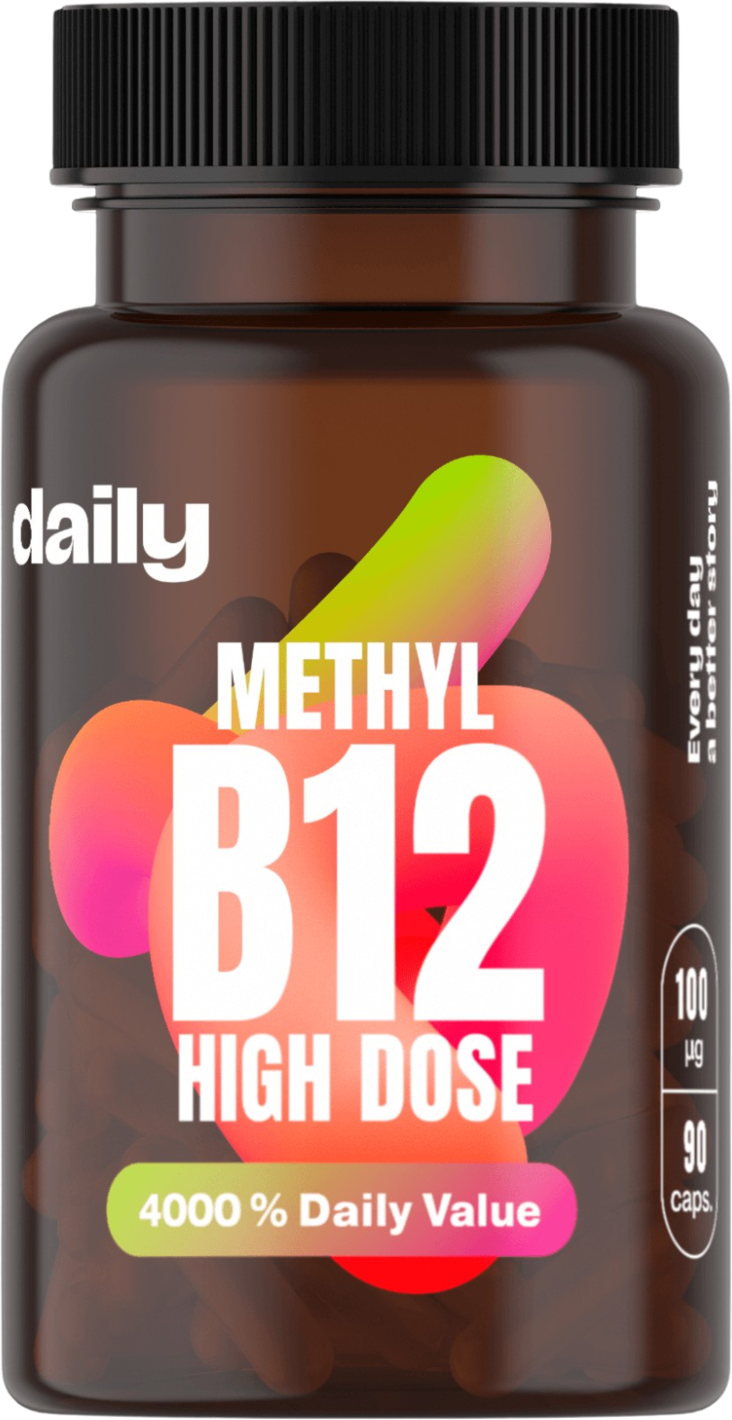 Methyl B12 High Dose by Daily obsahuje 100 mcg bioaktivní formy vitamínu B12 – methylkobalamin, který tělo může okamžitě využít. Na rozdíl od běžné formy (kyanokobalamin) není třeba žádná přeměna, takže je ideální i pro osoby s narušeným vstřebáváním nebo vyšší potřebou B12. Vitamin B12 přispívá ke snížení únavy, normální činnosti nervového systému, tvorbě červených krvinek a energetickému metabolismu.