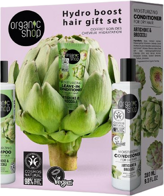 Dárková sada vlasoví péče Hydro Boost s organickým výtažkem z artyčoku a brokolice. Sada obsahuje hydratační šampon na suché vlasy, hydratační kondicionér a hydratační bezoplachový kondicionér. Více informací