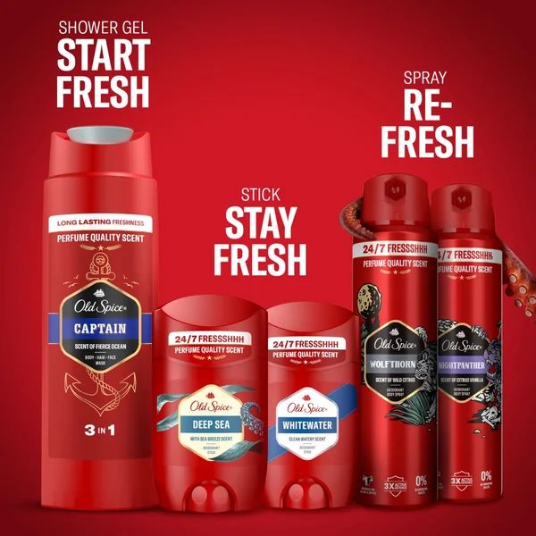 Zkuste také ostatní produkty značky Old Spice, které jsou v kategoriích Kosmetika, Sprchové gely a Deodoranty. Pokud si nejste jistí volbou tohoto produktu, zkuste se ještě podívat do kategorie Dárkové sady pro muže.
