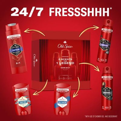 Old Spice Discovery Box obsahuje pět ikonických vůní v jednom balení. Tuhé a sprejové deodoranty a sprchový gel. Skvělý dárek pro moderního muže. Více informací