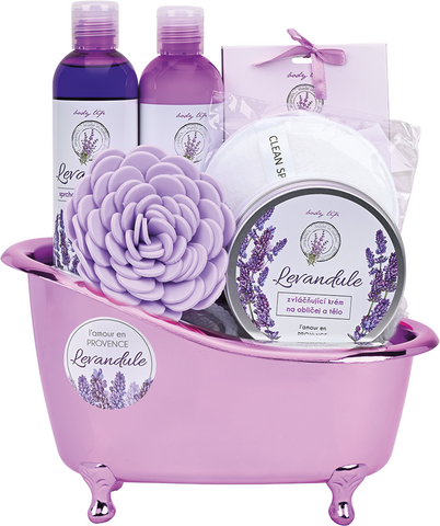 Dárkové balení levandule premium - sprchový gel a šampon + sůl do koupele + tělové mléko + zvláčňující krém+ 2x dárek