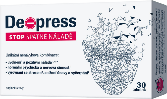 V dnešní hektické době se potýká s nadměrnou stresovou zátěží snad každý z nás. Ne vždy je ale nutné brát antidepresiva, překvapivý účinek mohou mít i některé doplňky stravy. Důkazem je De-press, který působí proti stresu, špatné náladě, a navíc snižuje únavu a vyčerpání.