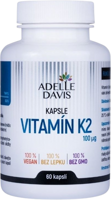 Adelle Davis Vitamín K2 (MK-7) 100 mcg 60 kapslíVše o produktuDoplňující informaceHodnocení produktuK2 je v tucích rozpustný vitamín, který bakterie v lidském těle nedokážou vyrobit v dostatečném množství a přitom hraje důležitou roli v metabolizmu (látkové přeměně v organizmu) a mineralizaci kostí (zásobování kostí, například vápníkem).