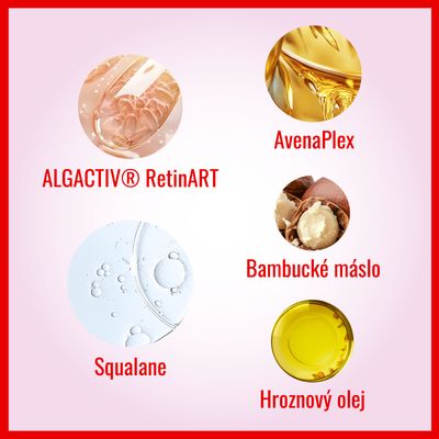 Neomezuje pobyt na slunci. Účinné aktivní látky: STIMU-TEX® AS, ALGAKTIV® RetinART , AvenaPlex, Squalane, bambucké máslo Již žádné začervenání pleti. Zajišťuje dlouhodobou hydrataci. Zmírňuje symptomy velmi suché, svědivé a podrážděné kůže. Více informací