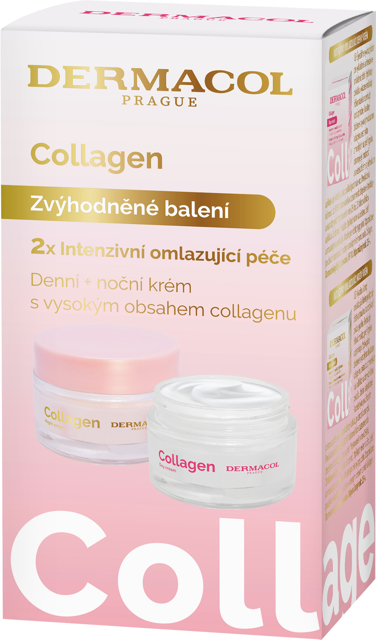 Výhodné balení krémů Collagen pro péči o Vaši pleť obsahuje: Collagen intenzivní omlazující denní krém, Collagen intenzivní omlazující noční krém. Více informací