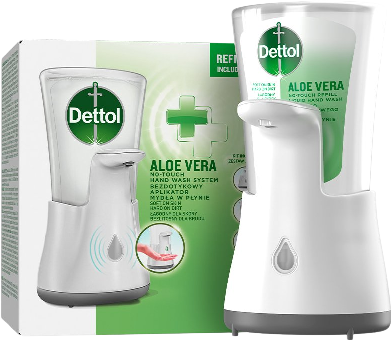 Dettol Bezdotykový dávkovač mýdla Aloe Vera vás pomáhá chránit před bakteriemi. Více informací