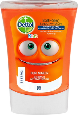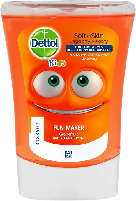 Náplň do bezdotykového dávkovače mýdla Dettol Kids Bavič s povzbuzující vůní grapefruitu. Více informací