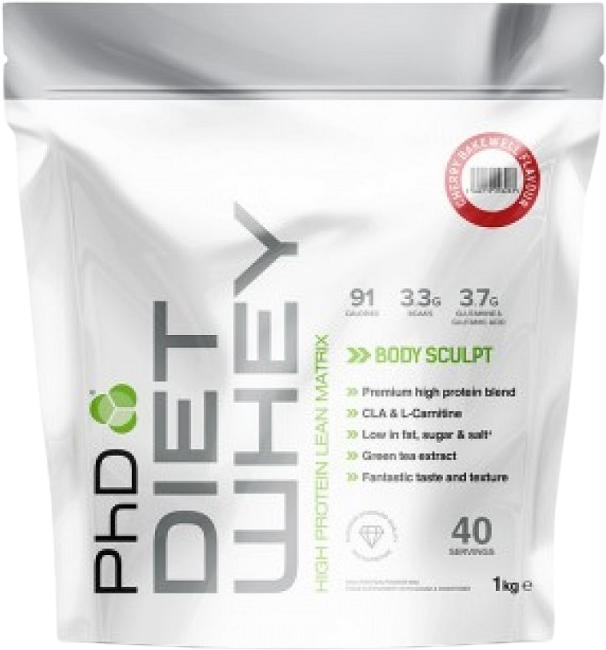 Složení příchuť belgian chocolate, chocolate orange deluxe, chocolate peanut, chocolate mint: PhD premium bílkovinná směs [syrovátkový bílkovinný koncentrát, mléčný bílkovinný koncentrát (z toho 80% micelární kasein), sójový bílkovinný izolát], nízkotučný kakaový prášek, waxy ječná mouka, moučka z lněného semínka, zahušťovadla (arabská guma, guarová guma, xanthanová guma), aroma, konjugovaná kyselina linolová (CLA) prášek [olej z Světlice barvířské (bohatý na CLA), glukózový sirup, mléčná bílkovina, emulgátor sójovýlecitin, vitamin E], L-karnitin, zelený čaj extrakt, sůl (jen příchuť belgian chocolate), sladidlo sukralóza.