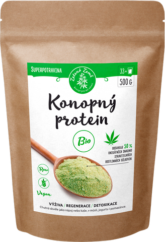 Konopný protein v BIO kvalitě - vysoce kvalitní rostlinná bílkovina. Čistě rostlinná 50% bílkovina, 90% stravitelnost a vstřebatelnost, bez laktózy a lepku, nejlepší výživa svalů a šlach. Certifikováno CZ-BIO-002.