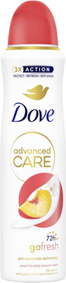 Objevte Dove Advanced Care Peach&White Blossom antiperspirant ve spreji pro 72hodinovou ochranu, svěží podpaží a navíc bez skvrn na oblečení. Více informací