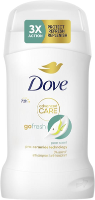 Dove Advanced Care Pear&Aloe Vera tuhý antiperspirant 50 mlVše o produktuDoplňující informaceHodnocení produktuAntiperspirant stick Dove Advanced Care Pear&Aloe Vera obsahuje ¼ hydratačního krému a 100% přírodní pečující olej, které zanechají pokožku v podpaží jemnou a hladkou na dotek. Tento antiperspirant nabízí navíc 72hodinovou ochranu před potem a zápachem.