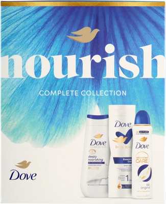 Dove Dárková sada F 250 ml SG + 150 ml Spray + 250 ml BL NourishVše o produktuDoplňující informaceHodnocení produktuSprchový gel