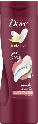 Revoluční tělové mléko obsahuje unikátní 20% AHA komplex s niacinamidem, jenž již od prvního použití viditelně zlepšuje vzhled tmavých skvrn a obnovuje elasticitu a jemnost vaší pokožky. Získejte nyní mladistvější a zářivější pokožku s naším Pro Age tělovým mlékem od Dove, které vás bude hýčkat každý den.