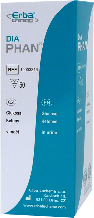 Zdravotnický prostředek, in vitro diagnostika, diagnostické proužky na analýzu moči. DiaPhan jsou diagnostické proužky určené k vizuální detekci glukózy a ketolátek v moči. Více informací