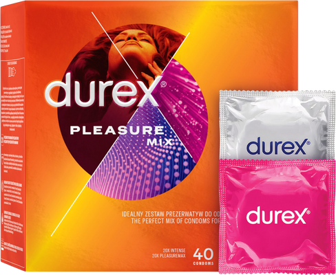 XXL balení kondomů DUREX Pleasure MIX 40 ks kombinuje oblíbené kondomy Intense, které jsou lubrikované úžasným gelem Desirex, který způsobuje pocit zahřívání, ochlazení nebo mravenčení pro její ještě intenzivnější prožitek a kondomy Pleasuremax pro extra stimulaci díky vroubkům a výstupkům navržených speciálně pro ni.