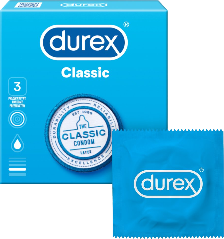 Durex kondomy Classic se díky technologii Easy-On snadno nasazují a lubrikační složka poskytuje větší komfort během intimních chvil. Jsou vyrobeny z přírodního kaučuku a dermatologicky testovány. Poskytují intenzivní zážitek při pohlavním styku. Více informací