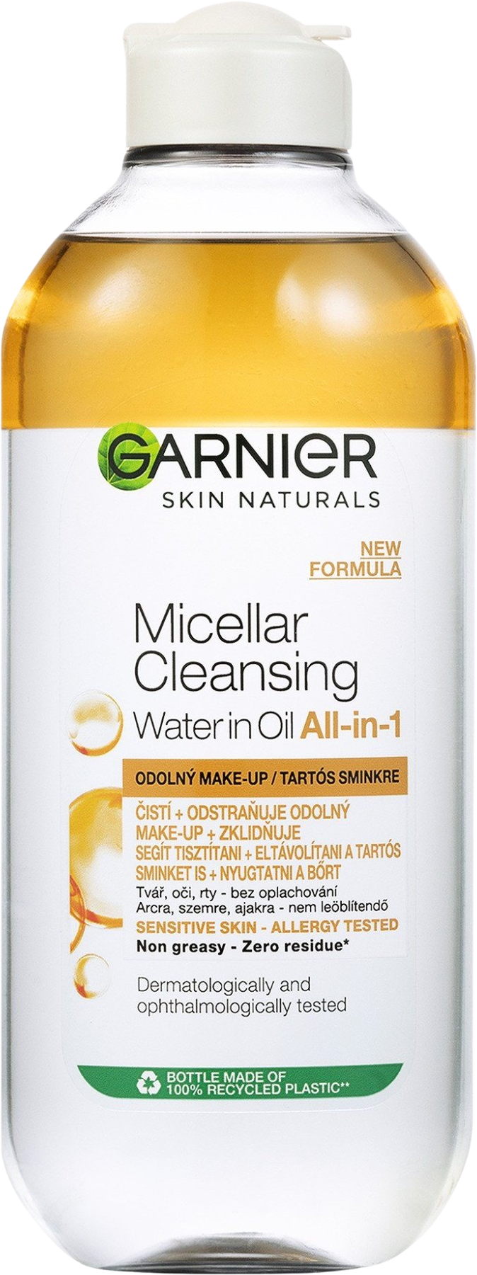 Garnier dvoufázová micelární voda s olejem pro odstranění voděodolného make-upu 400 mlVše o produktuDoplňující informaceHodnocení produktu