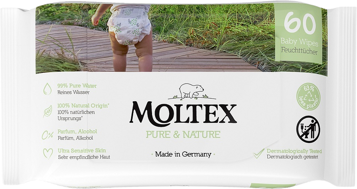 Moltex Pure & Nature EKO vlhčené ubrousky na bázi vody 60 ksVše o produktuDoplňující informaceHodnocení produktuVlastnosti