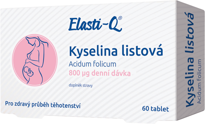 Elasti-Q Kyselina listová 800 je doplněk stravy v tabletách, používaný při nedostatku pyridoxinu (vitaminu B6) a kyseliny listové.