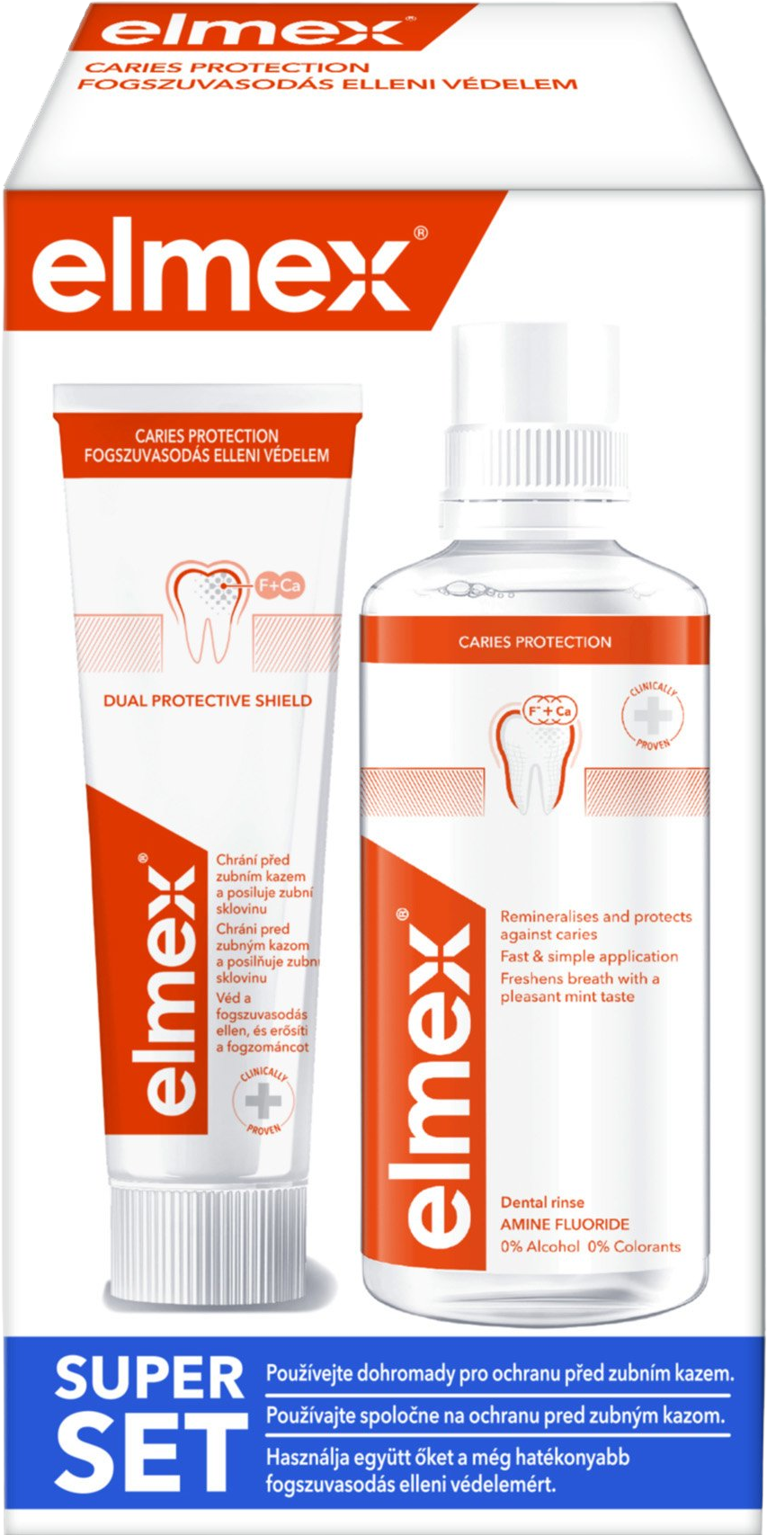 Ústní voda elmex®Caries Protection s aminfluoridem. Vysoce účinné složení ústní vody elmex® s aminfluoridy vytváří dvojitou aktivní ochrannou vrstvu vápníku a fluoridu, která mineralizuje zuby a účinně chrání před zubním kazem. Vypláchnutí ústní vodou ochrání i povrchy zubů, které jsou pro zubní kartáček obtížně dosažitelné a jsou proto náchylnější ke vzniku zubního kazu.
